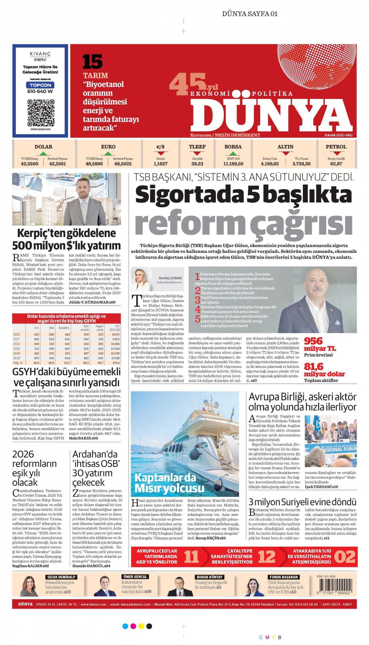 Dünya Gazetesi 10 Aralık 2025 Günü Manşeti