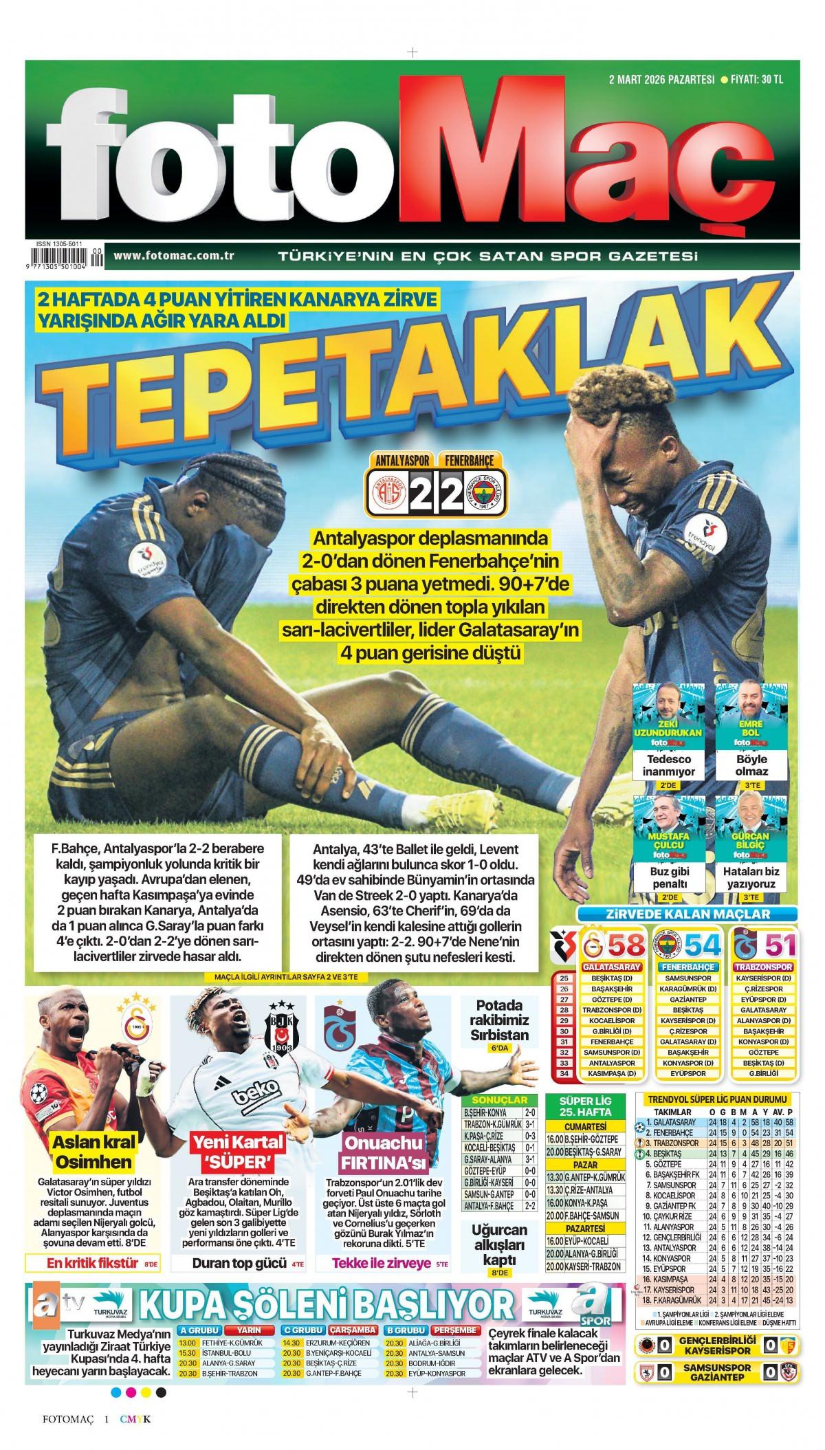Fotomaç Gazetesi 3 Mart 2026 Günü Manşeti