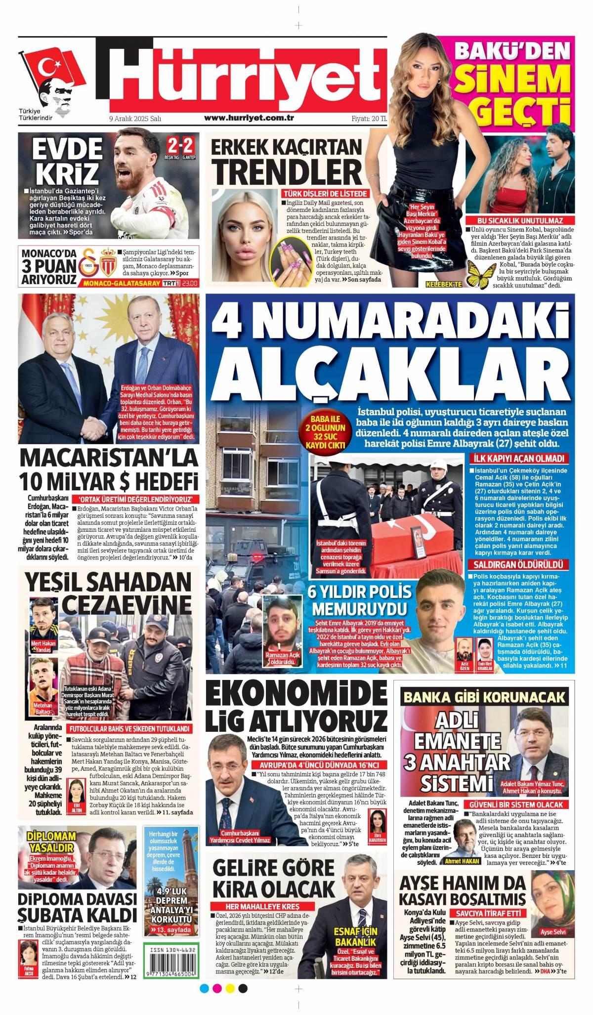 Hürriyet Gazetesi 10 Aralık 2025 Günü Manşeti