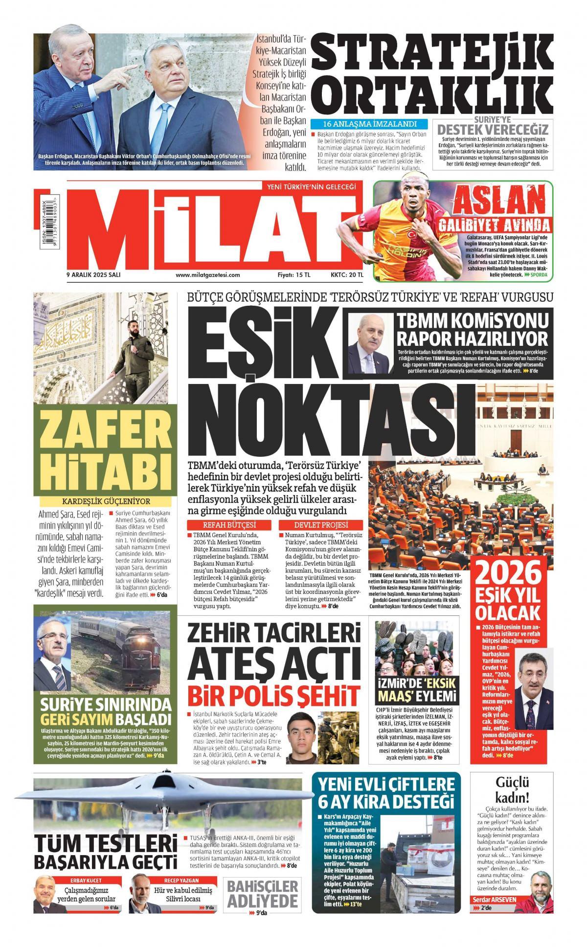 Milat Gazetesi 10 Aralık 2025 Günü Manşeti