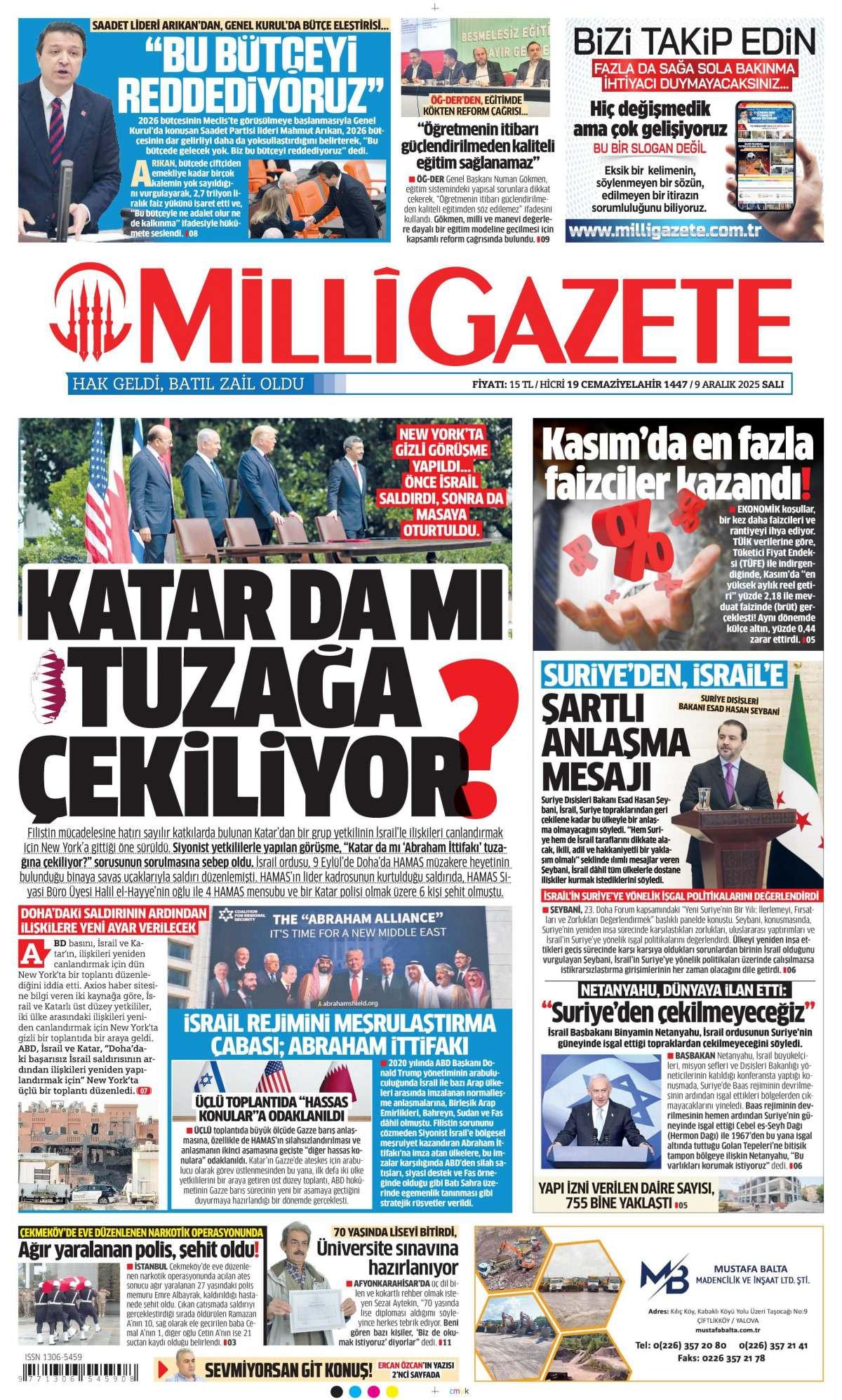 Milli Gazetesi 10 Aralık 2025 Günü Manşeti