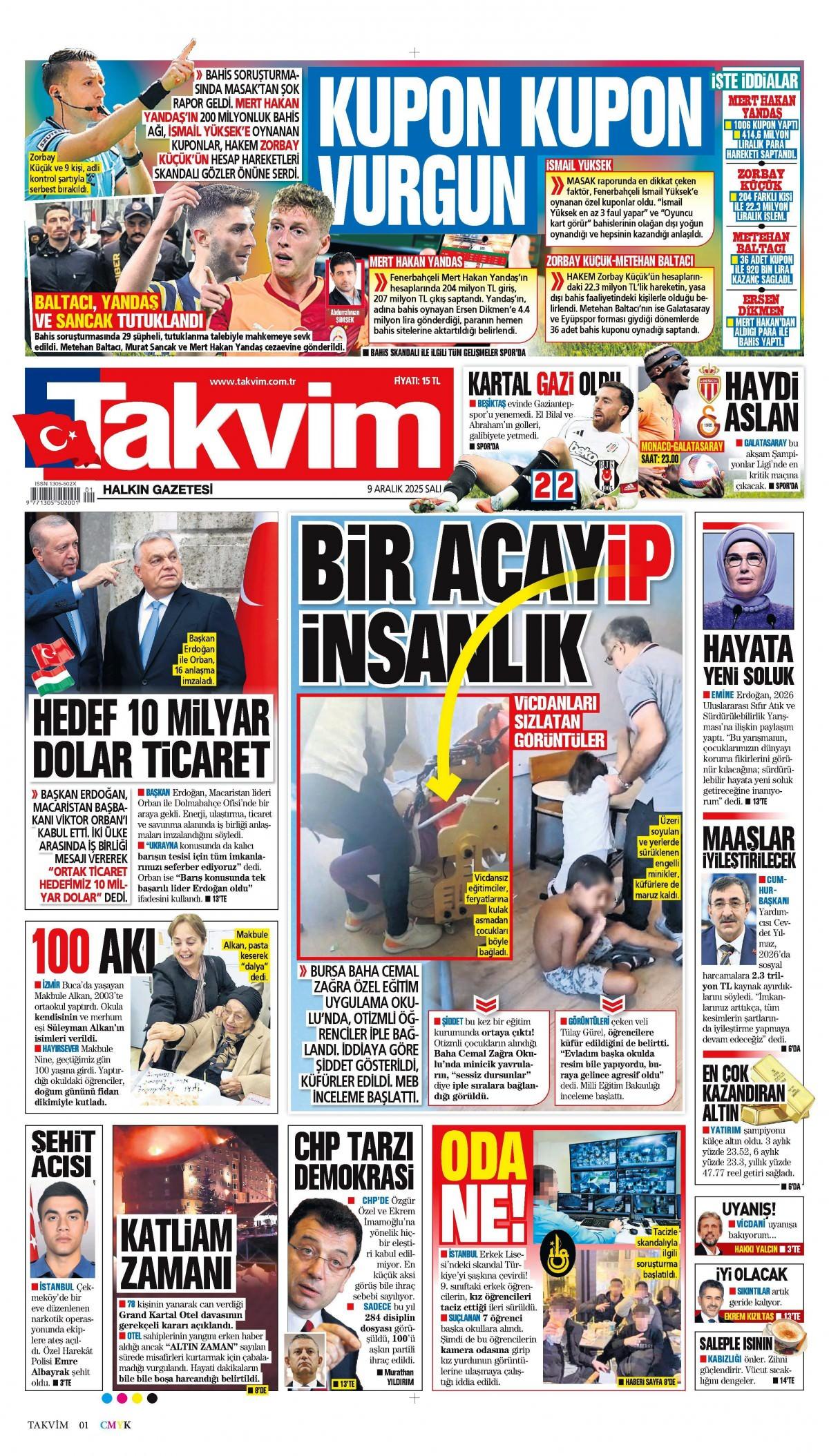 Takvim Gazetesi 10 Aralık 2025 Günü Manşeti