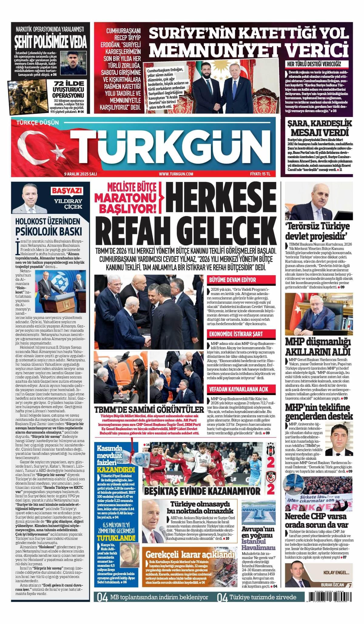 Türkgün Gazetesi 10 Aralık 2025 Günü Manşeti
