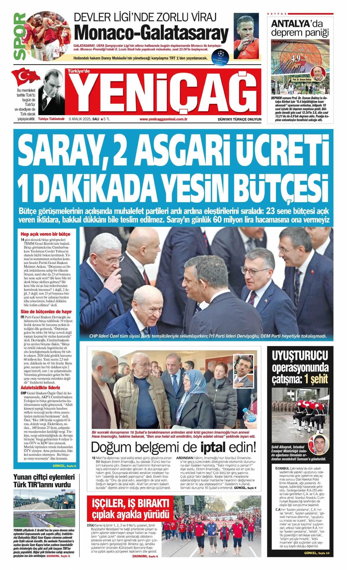 Yeni Çağ Gazetesi 10 Aralık 2025 Günü Manşeti